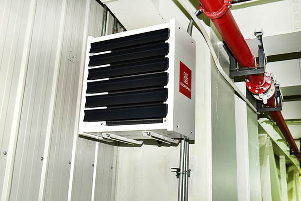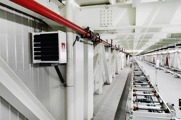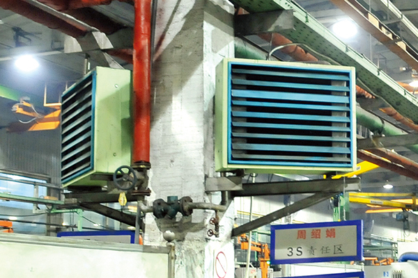 大連重型公司采用康平熱水型側(cè)吹暖風(fēng)機(jī)。