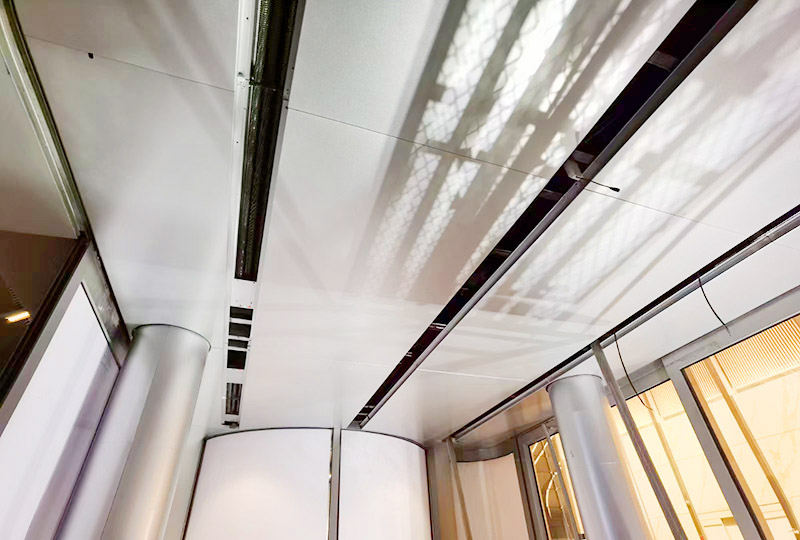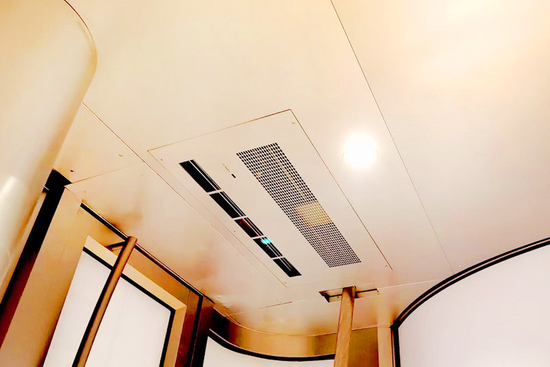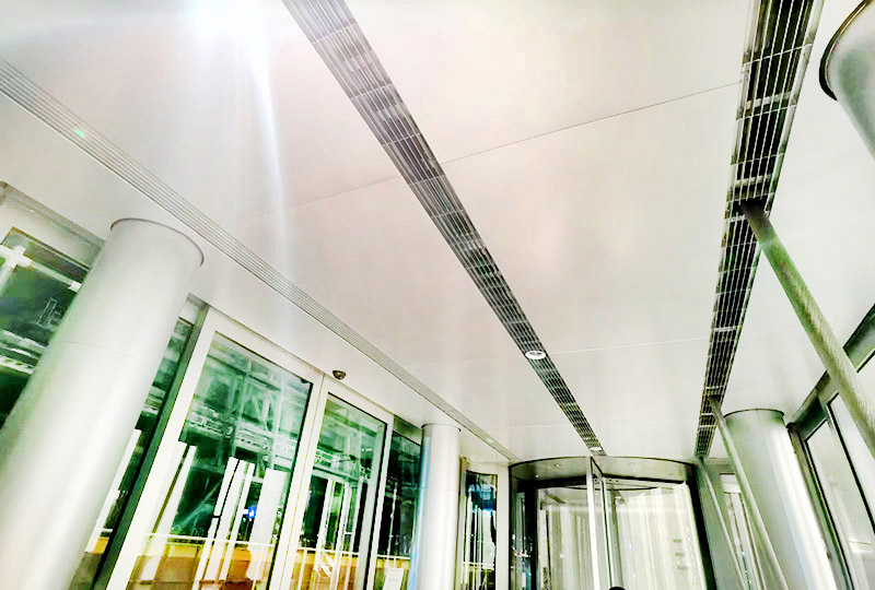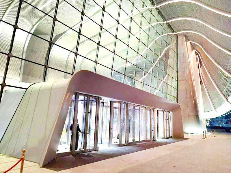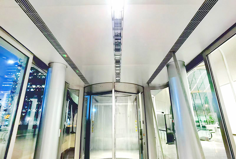 項目簡介:中國尊-中信大廈門廳入口原電熱電幕、裝飾吊頂全面升級,康平全定制模塊化電熱空氣幕系統(tǒng),綜合大風(fēng)量、微孔消聲、智能溫度控制、整體建筑裝飾設(shè)計制造,