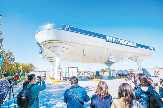 大興國際氫能示范區(qū)占地6000多平方米的加氫站,園區(qū)投用一年來已集聚139家氫能行業(yè)企業(yè)。中國氫能“第一股”北京億華通科技股份有限公司就是其中之一。氫能是一種綠色、高效的二次能源,被視為“21世紀終極能源”。北京市發(fā)布了多項氫能相關政策,為氫能發(fā)展提供方向和路徑。大興國際氫能示范區(qū)應運而生,構建起以加氫示范站、氫能交流中心、科技園區(qū)為載體,產(chǎn)業(yè)基金、企業(yè)聯(lián)盟、專項政策、試驗基地為支撐的“3+4”氫能產(chǎn)業(yè)生態(tài)體系。氫能交流中心,寬敞明亮的展廳里,加氫站模型、氫燃料發(fā)動機、氫能自行車、氫能摩托車、新氫動力氫能叉車、氫能汽車等一一展示。